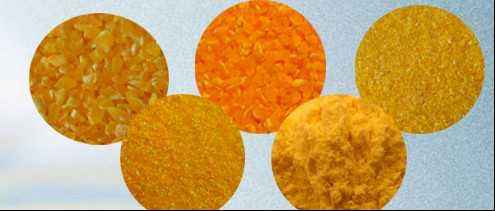 (1)特制玉米粉和胚粉:玉米籽粒脂肪含量較高,在貯藏過程中會因脂肪氧化作用產生不良味道。經加工而成的特制玉米粉,含油量降低到1%以下,可改善食用品質,粒度較細。適于與小麥面粉摻和作各種面食。由于富含蛋白質和較多的維生素,添加制成的食品營養價值高,是兒童和老年人的食用佳品。